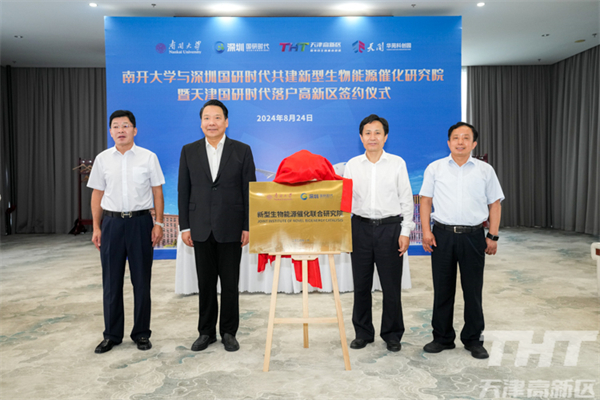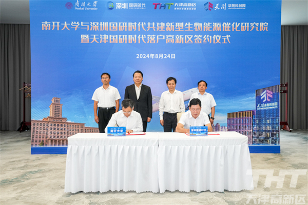 8月24日,南开大学与深圳国研时代共建新型生物能源催化研究院暨天津国研时代落户高新区签约仪式在南开大学举行。南开大学校长陈雨露,市科学技术局党委书记、局长朱玉兵,高新区党委书记、管委会主任夏青林,深圳国研时代科技有限公司董事长苏建章共同为新型生物能源催化研究院揭牌,高新区管委会副主任崔同湘代表高新区与天津国研时代签署落户协议。